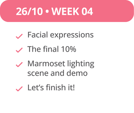 You’ll also get access to a private group where you’ll receive constant feedback from a teaching assistant with amazing skills! This version is limited to a small group of students to ensure close attention to each artist. At the end, you’ll have the opportunity to present your project to a special guest, Renaud Galand (Character Art Director at Riot Games)!