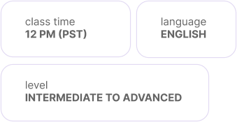 All classes will take place live at 12 PM (noon) PST. Don’t worry if you can’t attend live — recordings will be available afterward.
